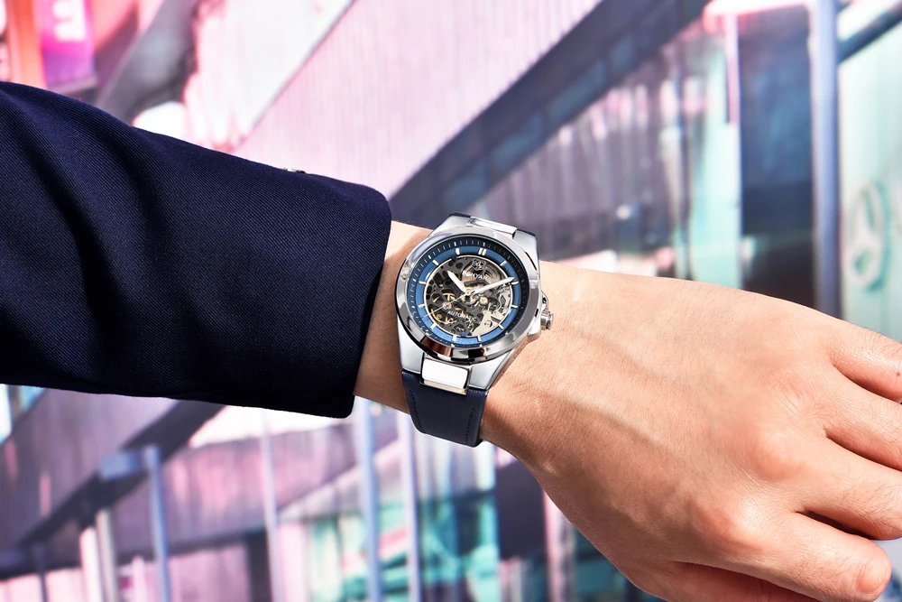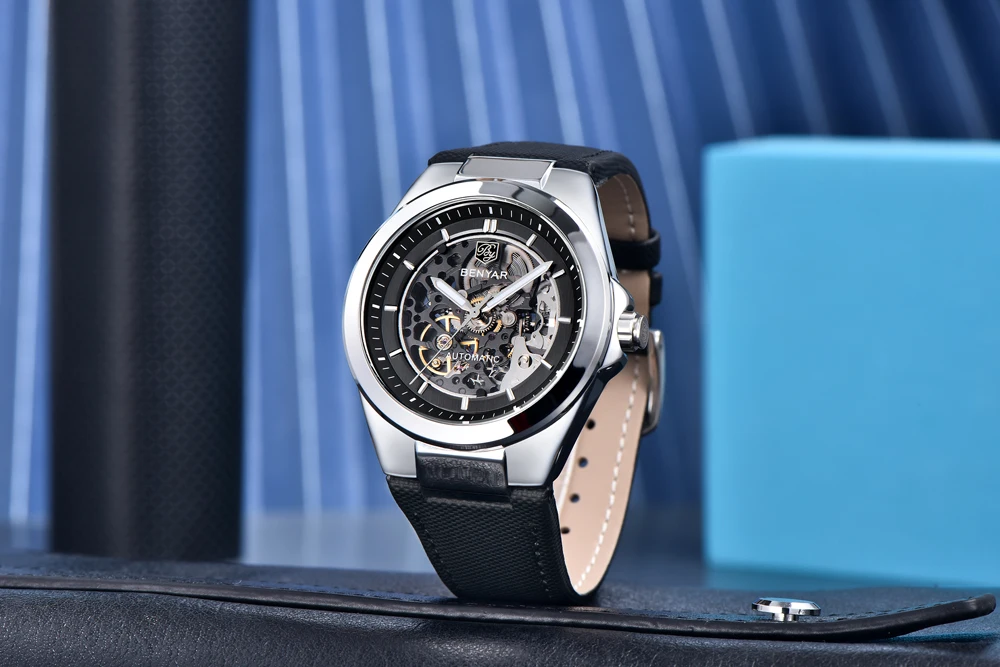 Material: Caixa em aço inoxidável com pulseira de couro legítimo